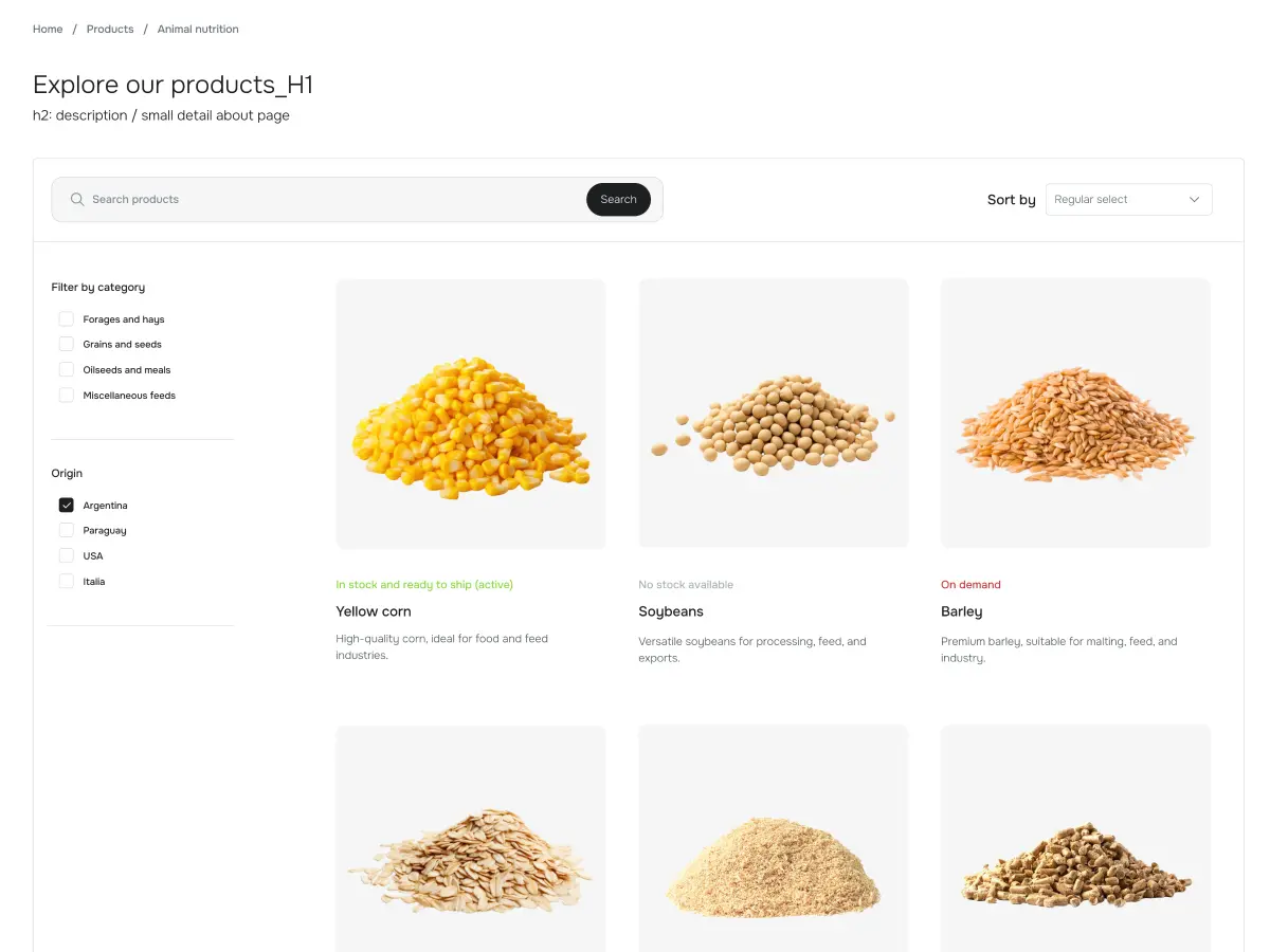 You can buy and sell products such as forage, feed, and grains with detailed specifications and real-time availability. See the full catalogue here.
